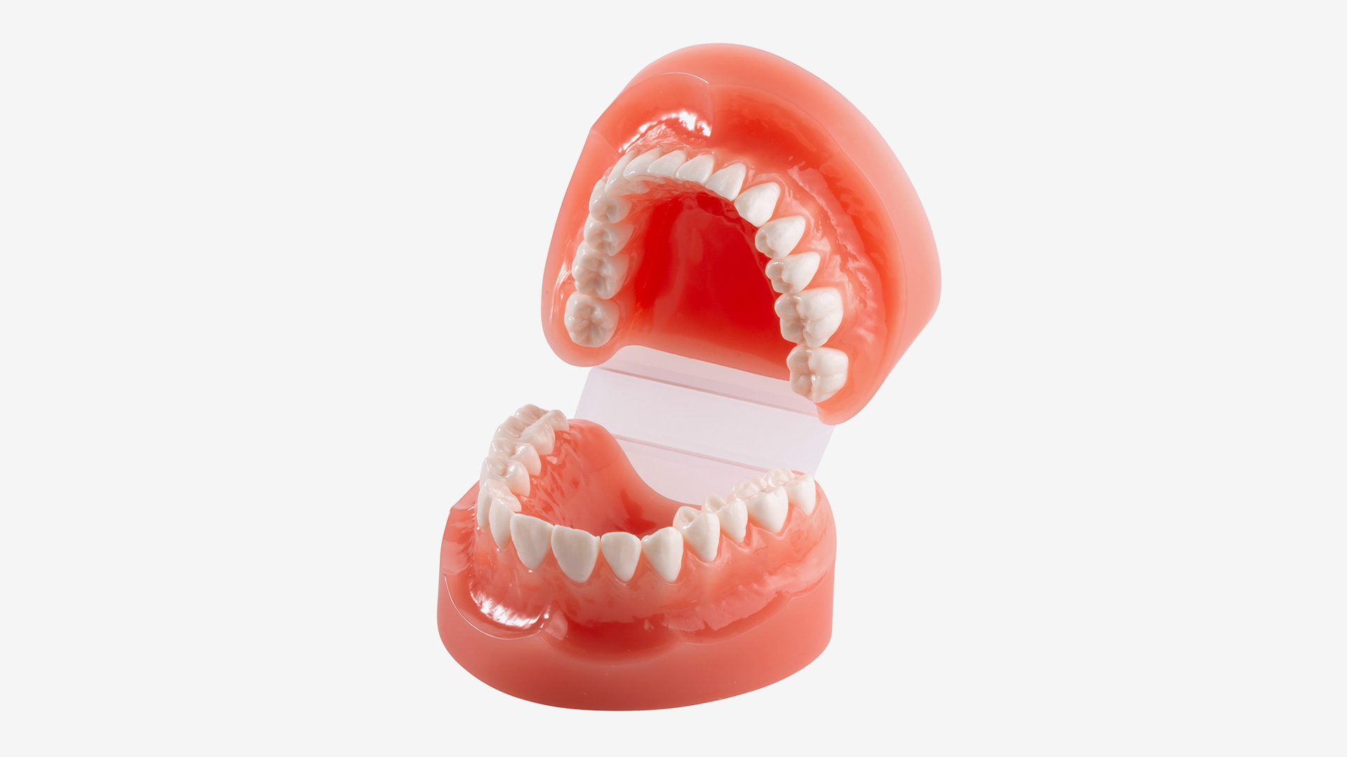 Zahnputzmodell mit hartem Zahnfleisch für die Präsentation idealer Putz- und Zahnseidetechnik. Inhalt: 1 st